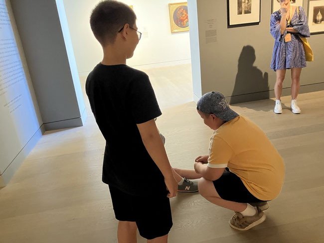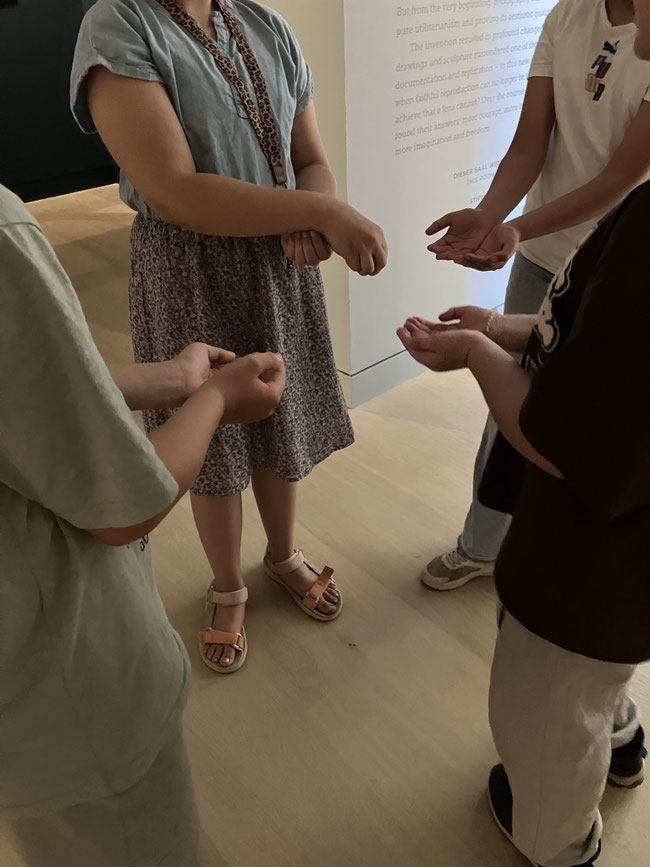 In der ersten Aufgabe haben wir uns in einem begrenzten Rahmen und ohne Worte nach Fächern aufgeteilt, die wir besonders klasse finden - unsere 3 Standbilder haben klar gezeigt, dass es zwei Klasse - Fächer gibt: 1. Sport, 2. Kunst und 3. eine Gruppe, die sich für Kunst und Sport entschieden hat.